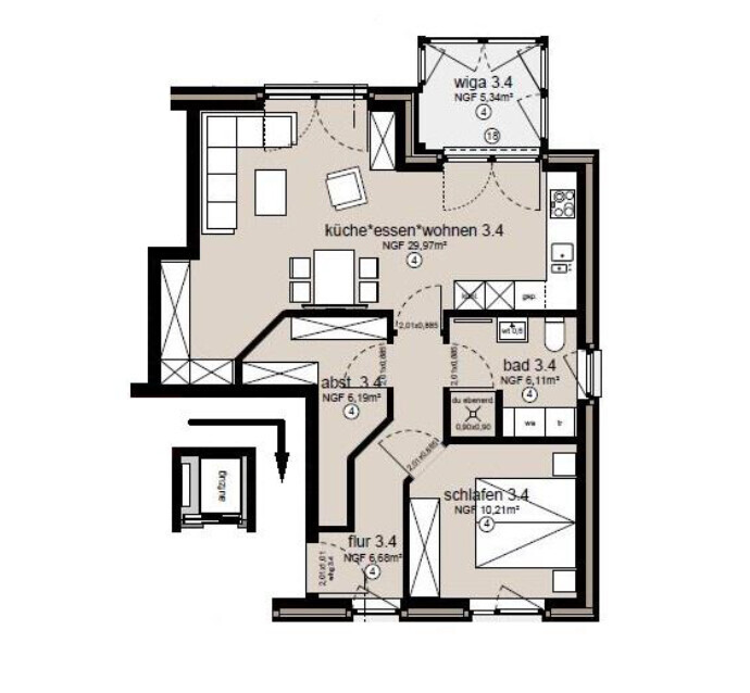 In der Miete sind schon alle Nebenkosten inkl. eigenem PKW-Stellplatz und Nutzung der Einbauküche enthalten. Nur der Wohnungsstrom wird von Ihnen direkt an einen Versorger gezahlt.